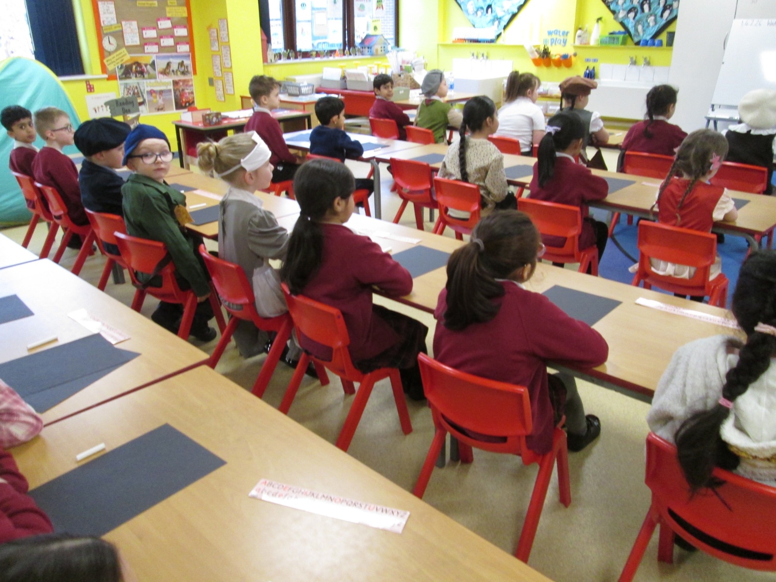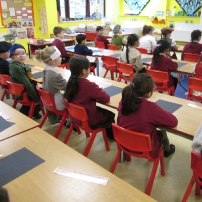 This morning we went back in time to school in 1914. We learnt the 3Rs. Lots of us loved it but some of us weren't keen on how strict it was! Luckily, nobody needed the Dunce's hat!